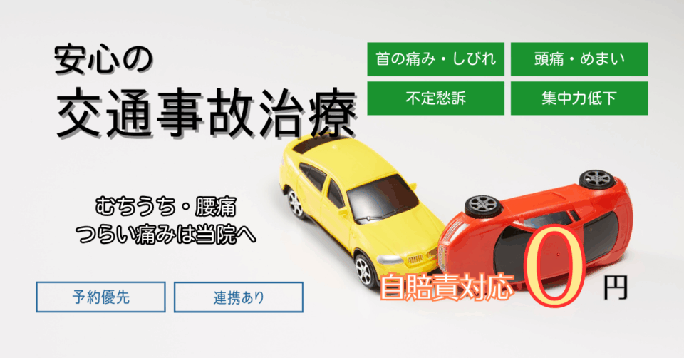 交通事故治療で対応にお困りの方も安心して通える整骨院です。