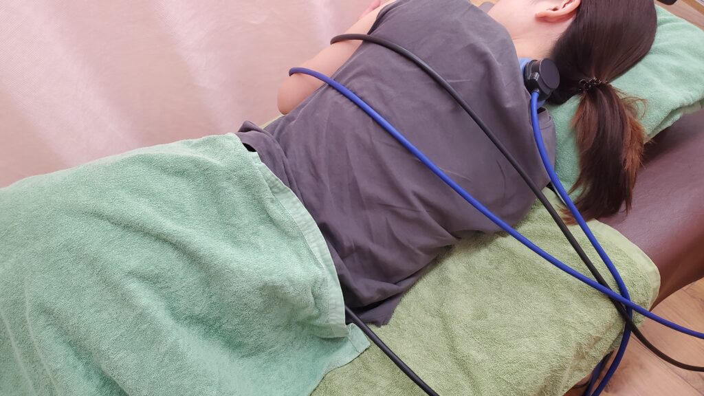 体感は穏やかで、横になっているだけで受けられます。感電する嫌な感じや痛みはほとんどありません。